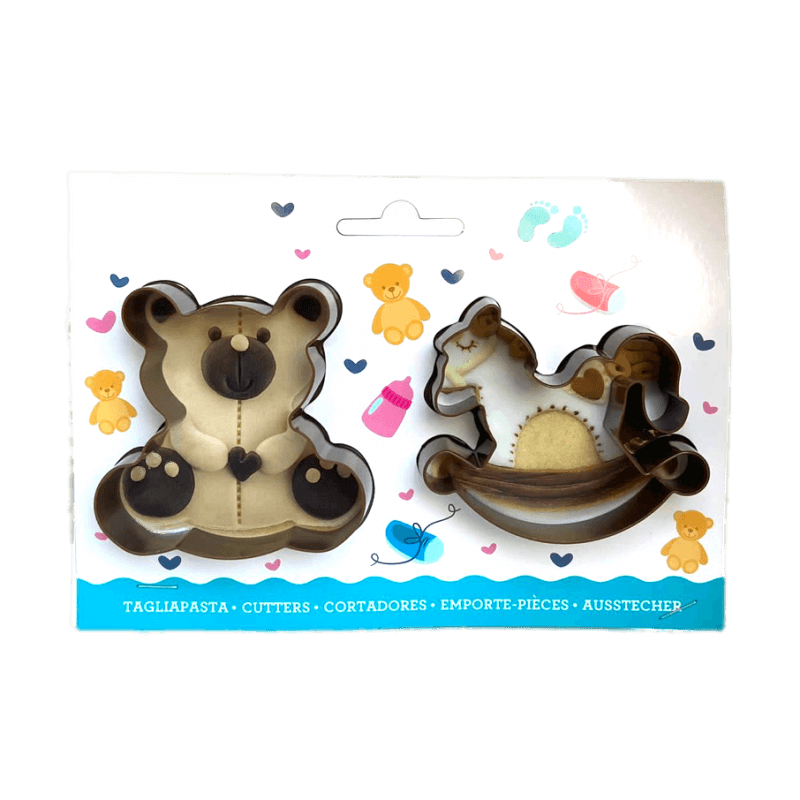 Tamaño cortadores: Osito: 7,5 x 7 cm. Caballito: 8 x 6,5 cm.