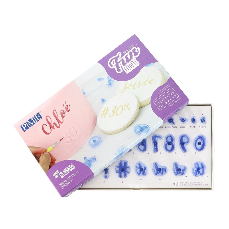 Hecho de plástico transparente de color azul pálido para brindar confianza al colocar las letras en su posición. El reverso de cada sello muestra el carácter apropiado, una flecha direccional y una línea central para ayudar con el posicionamiento. Viene en una caja de almacenamiento para un almacenamiento seguro y compacto, todas las piezas tienen una ubicación designada. Este juego funciona muy bien con todos los materiales, incluida pasta de azúcar, chocolate para modelar, mazapán y una gran variedad de otros materiales de decoración. Fabricado con plástico de alta calidad apto para uso alimentario. ¡Inastillable!