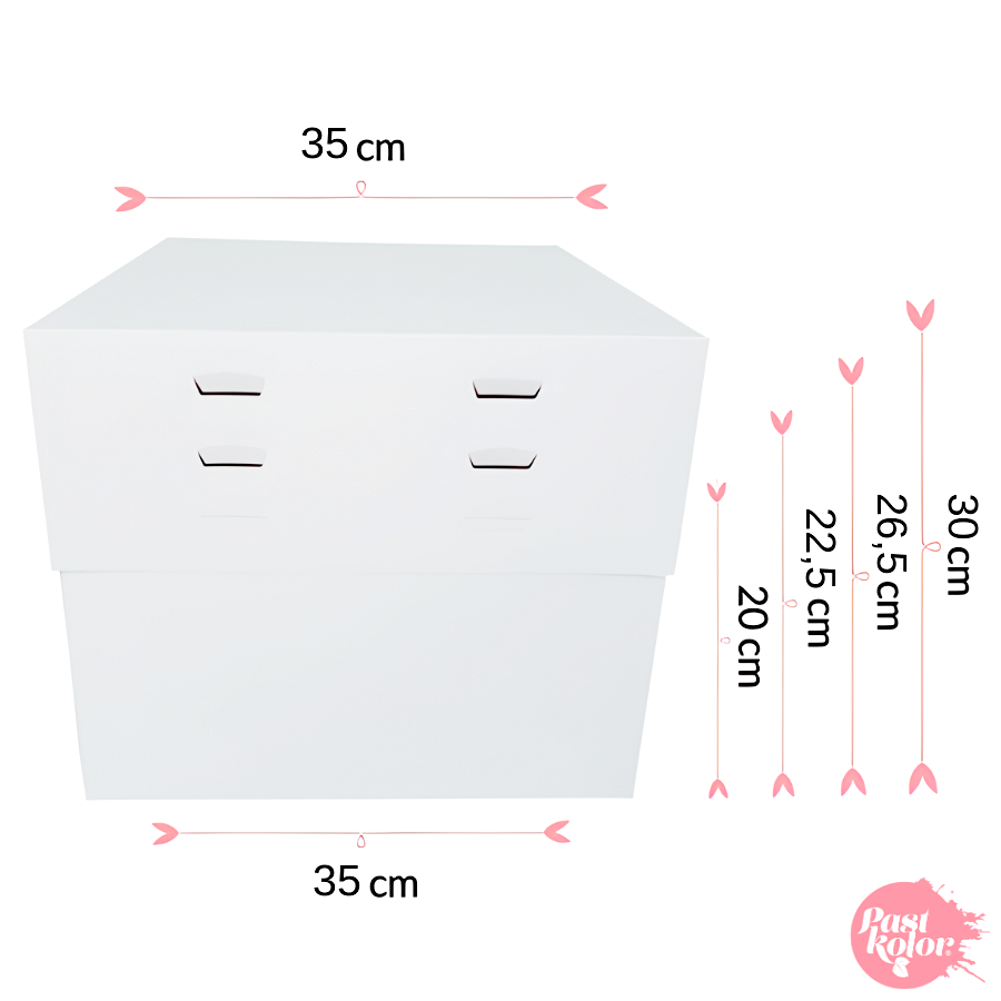Caja blanca de calidad profesional, hecha de cartón resistente, perfecta para proteger y transportar tus creaciones. Se compone de 2 piezas (base y tapa) y se envía desmontada para prevenir daños durante el transporte. Fabricada con cartón resistente y de calidad alimentaria.