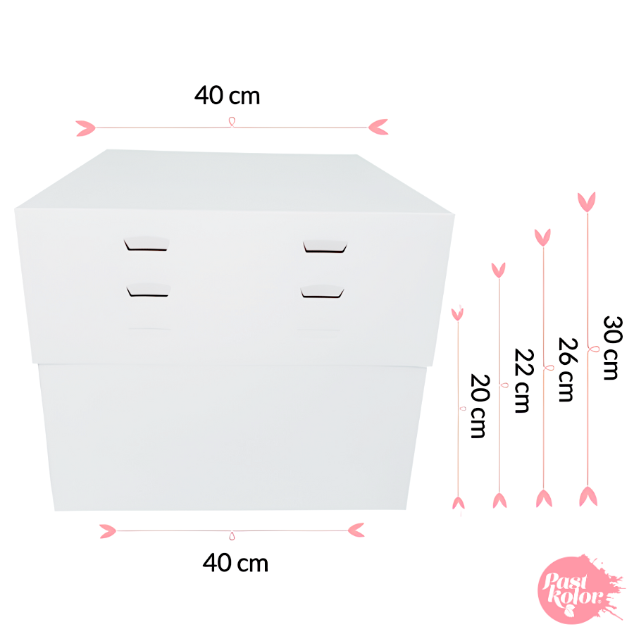 Caja blanca de calidad profesional, hecha de cartón resistente, perfecta para proteger y transportar tus creaciones. Se compone de 2 piezas (base y tapa) y se envía desmontada para prevenir daños durante el transporte. Fabricada con cartón resistente y de calidad alimentaria.