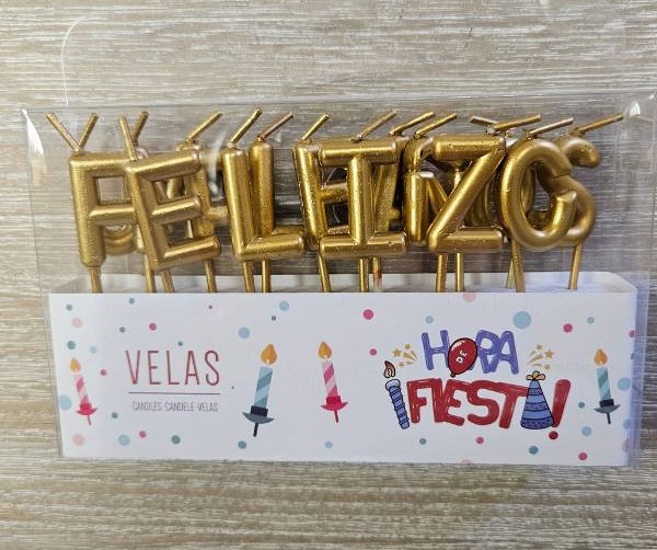 Velitas feliz cumpleaños metalizadas frase mensaje aviso letrero de 15 letras. embalaje en blíster de PVC.