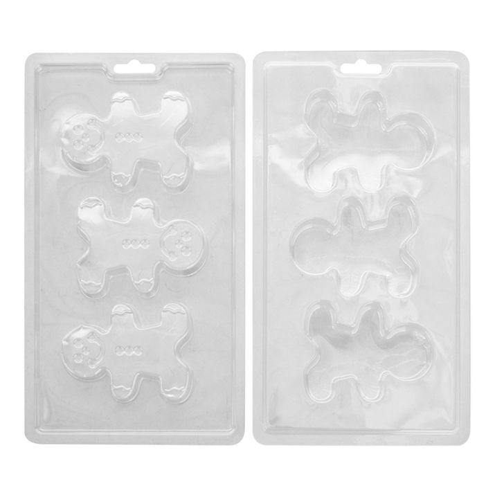El paquete incluye dos moldes de plástico, cada uno con tres cavidades de muñecos de jengibre, lo que permite obtener un total de tres muñecos de jengibre completos cuando se usan ambos moldes.
